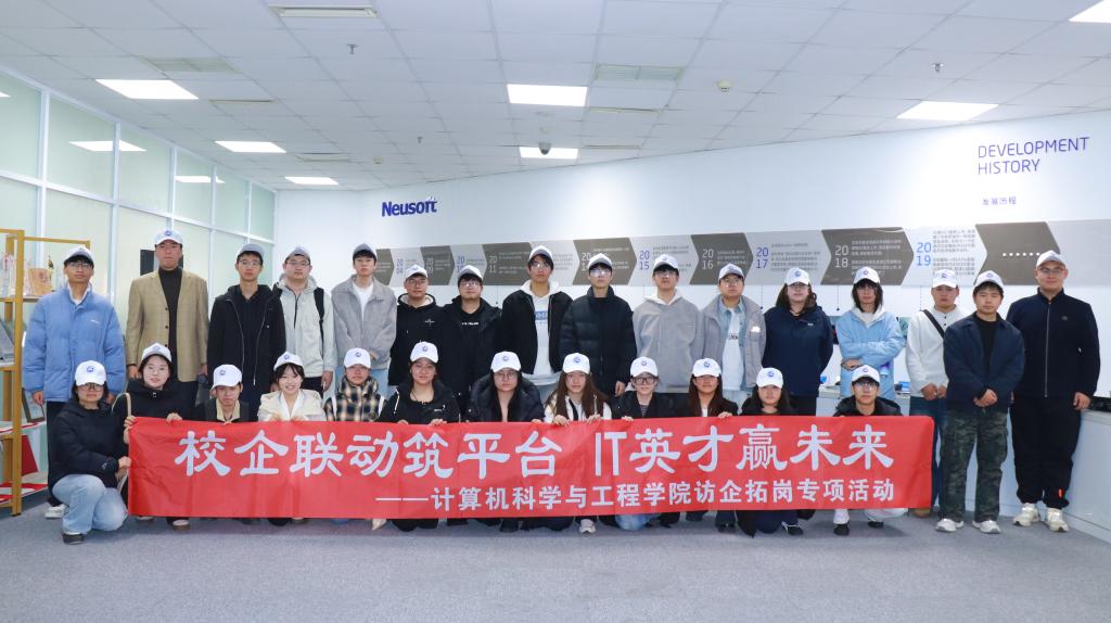 计算机科学与工程学院35名学生深入公司技术研发部门参观学习,实地了解了东软集团的工作氛围、技术研发流程及企业文化,进一步增强了他们对未来职业发展的认知与期待。