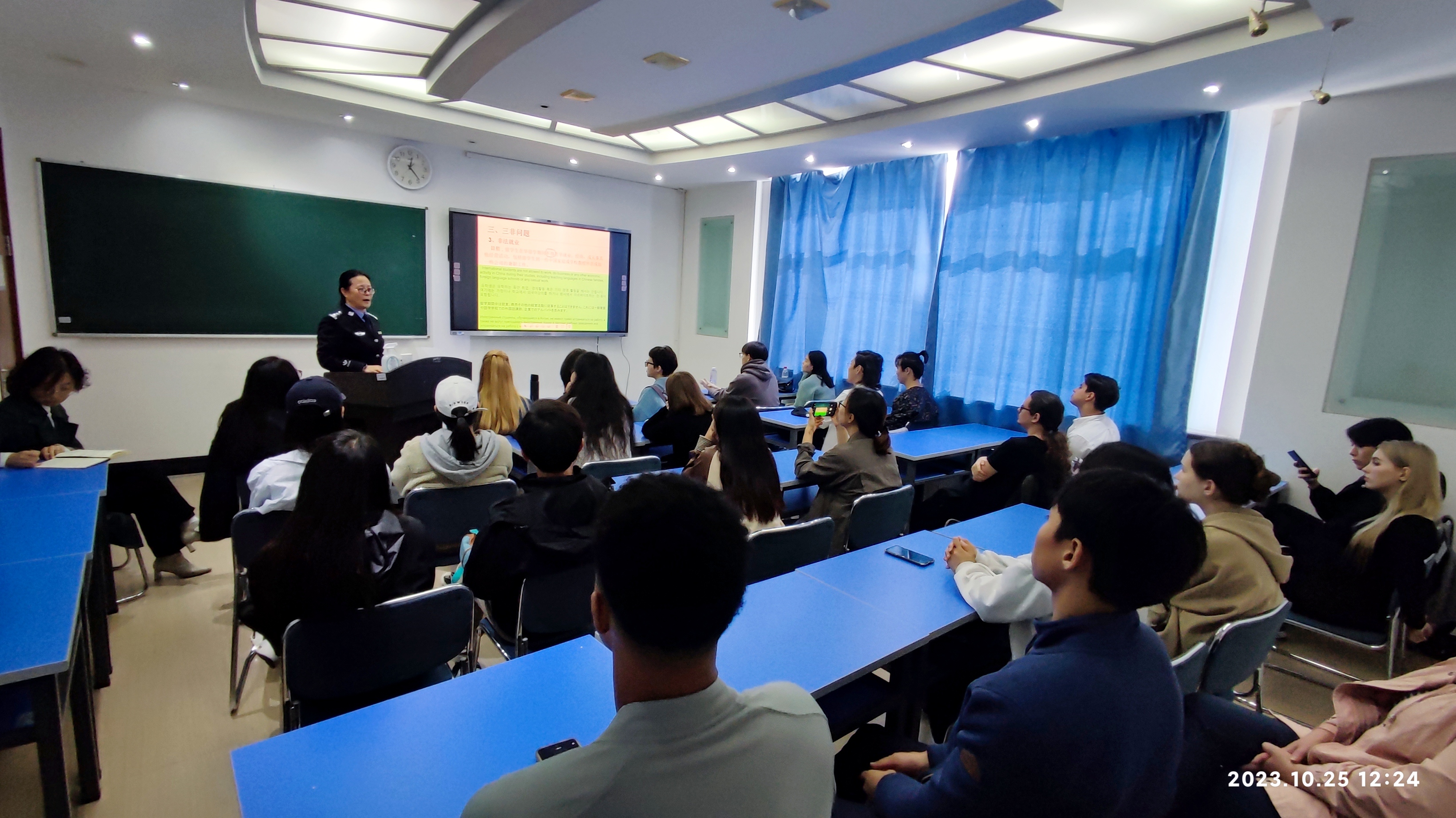 10月25日,国际文化交流学院邀请黄海路派出所李国霞警官对留学生开展法律宣传教育。直属党支部书记辛会芳、留学生科工作人员以及22名留学生参加教育活动。