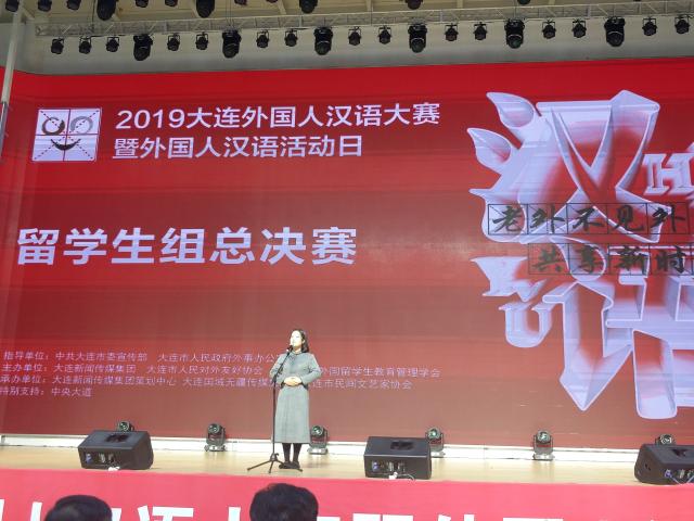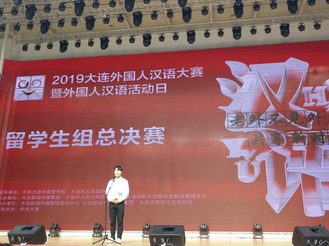 我校选手崔欢喜在2019大连外国人汉语大赛中演讲