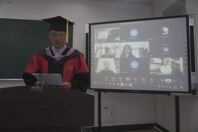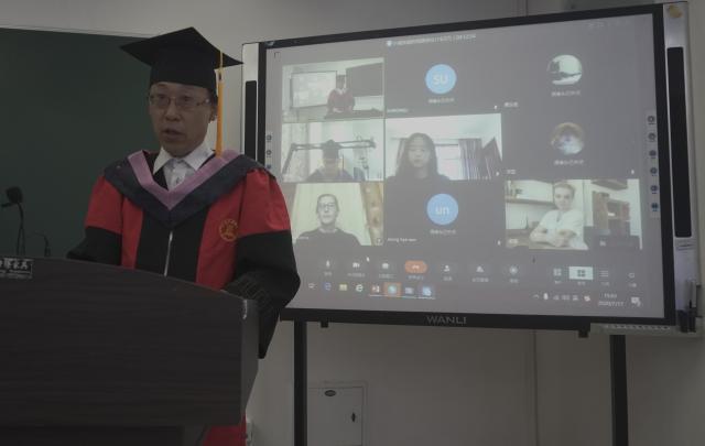▲ 刘晓东书记宣读授予2020届本科生毕业生学士学位的决定以及2020年春季学期结业留学生名单