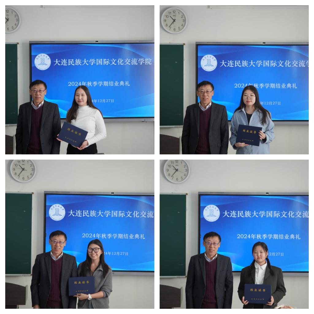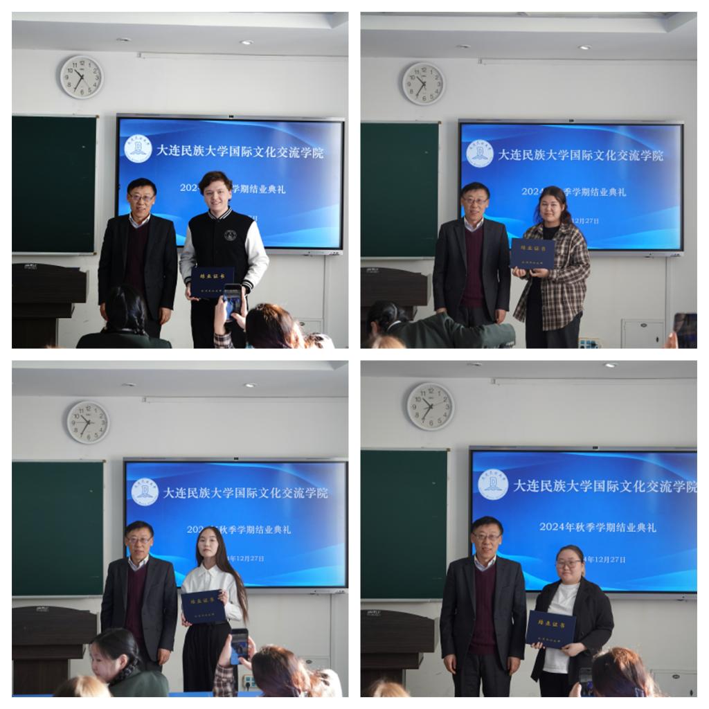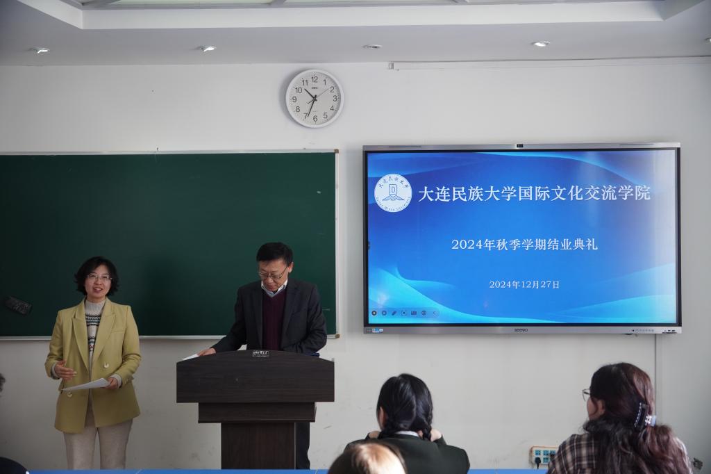 12月27日,国际文化交流学院举行2024年秋季学期结业典礼,学院领导班子成员、任课教师出席典礼,14名留学生参加了典礼。典礼由国际文化交流学院副院长刘俊民主持。
