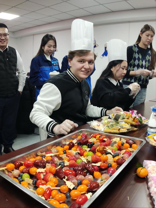 活动的尾声,公司为留学生们准备了一项特别的惊喜——制作冰糖葫芦。这项传统小吃在中国有着悠久的历史和深厚的文化底蕴,象征着甜蜜与幸福。