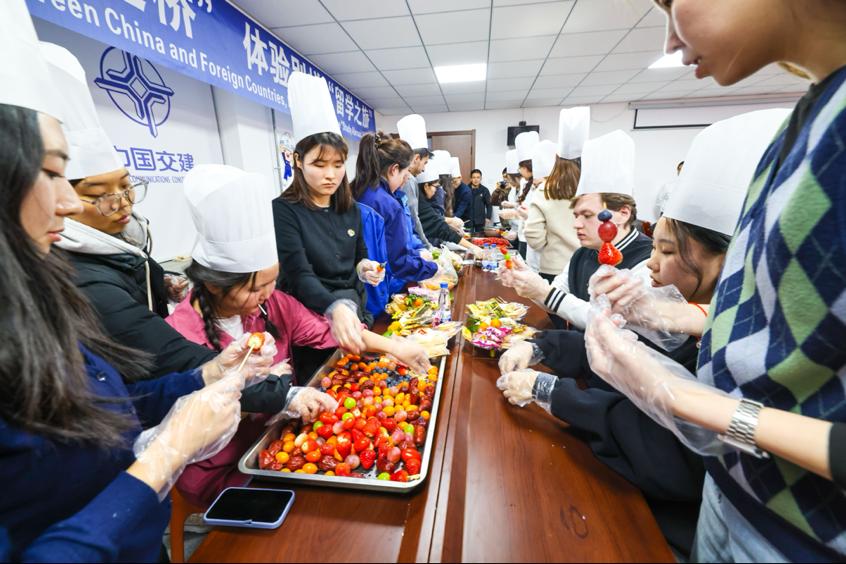 在工作人员的指导下,留学生们串起山楂、草莓等色彩缤纷的各种水果。当他们尝到冰糖葫芦时所感受的那份甜蜜不仅来自味蕾的享受,更源于对中国传统文化的亲身体验和深刻理解。