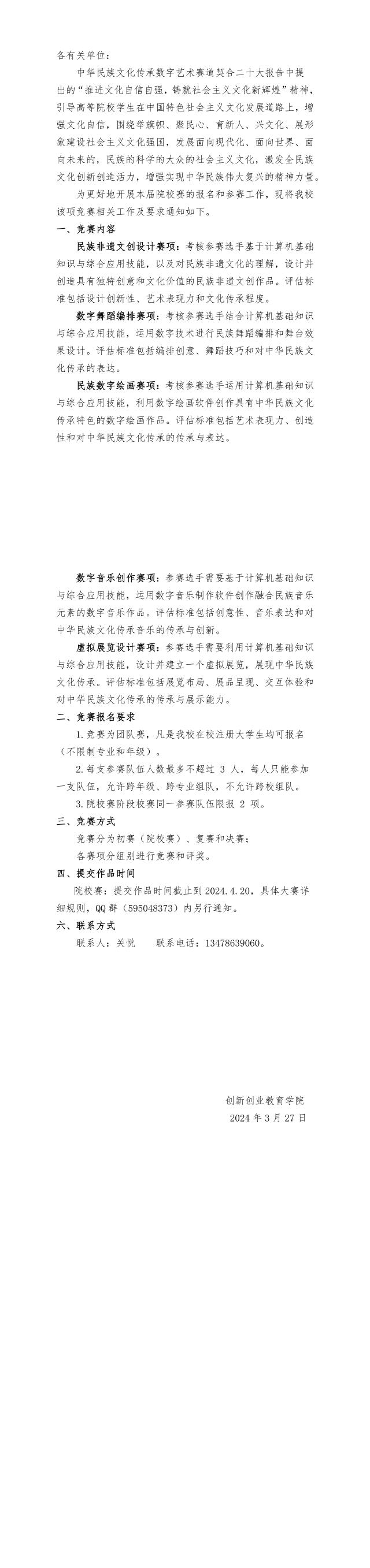 关于组织参加2024年第十四届全国大学生计算机应用能力与数字素养大赛中华民族文化传承数字艺术赛道竞赛的通知