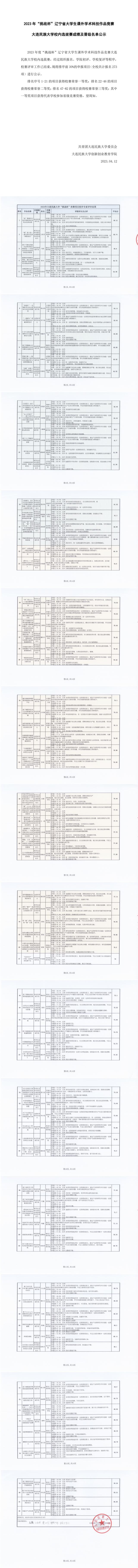 2023年“挑战杯”辽宁省大学生课外学术科技作品竞赛大连民族大学校内选拔赛成绩及晋级名单公示