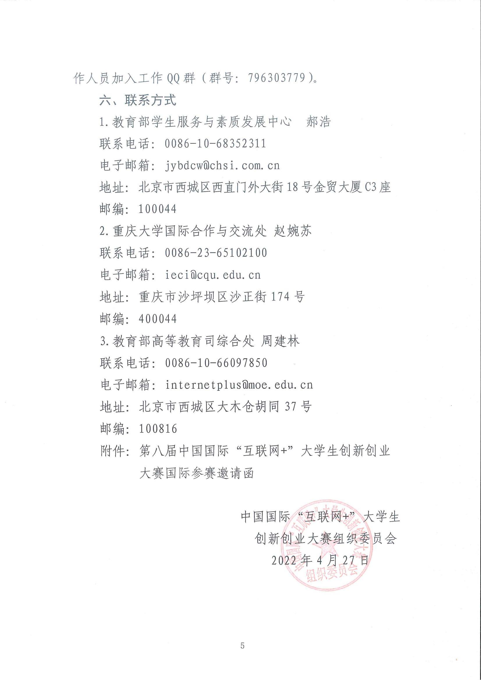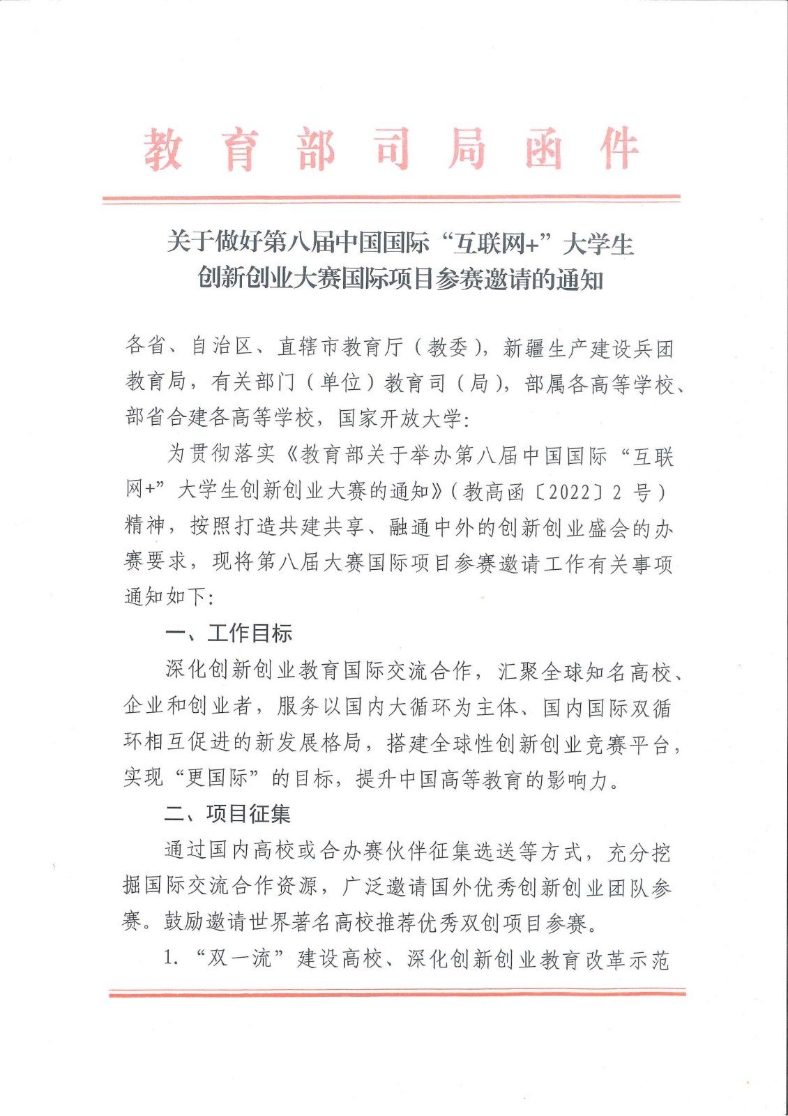 关于做好第八届中国国际“互联网+”大学生 创新创业大赛国际项目参赛邀请的通知
