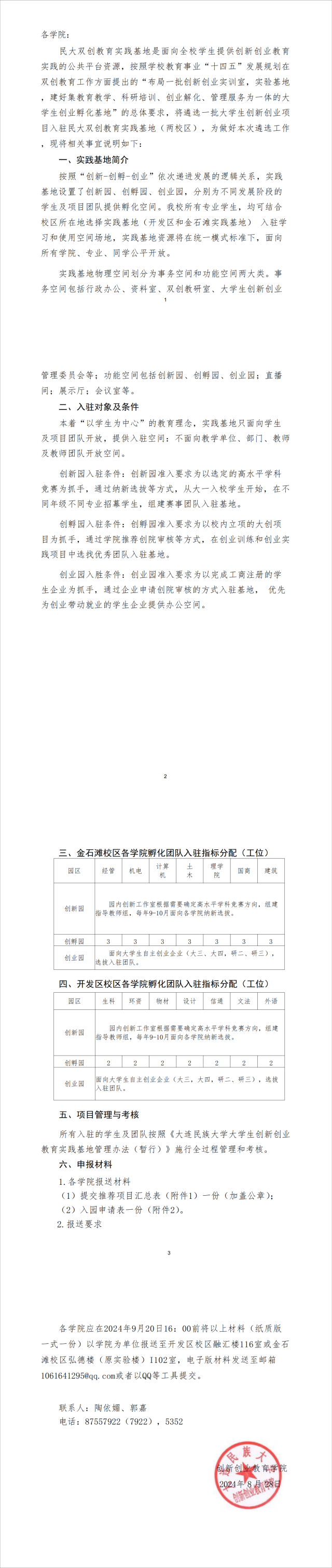 关于入驻民大双创教育实践基地的通知
