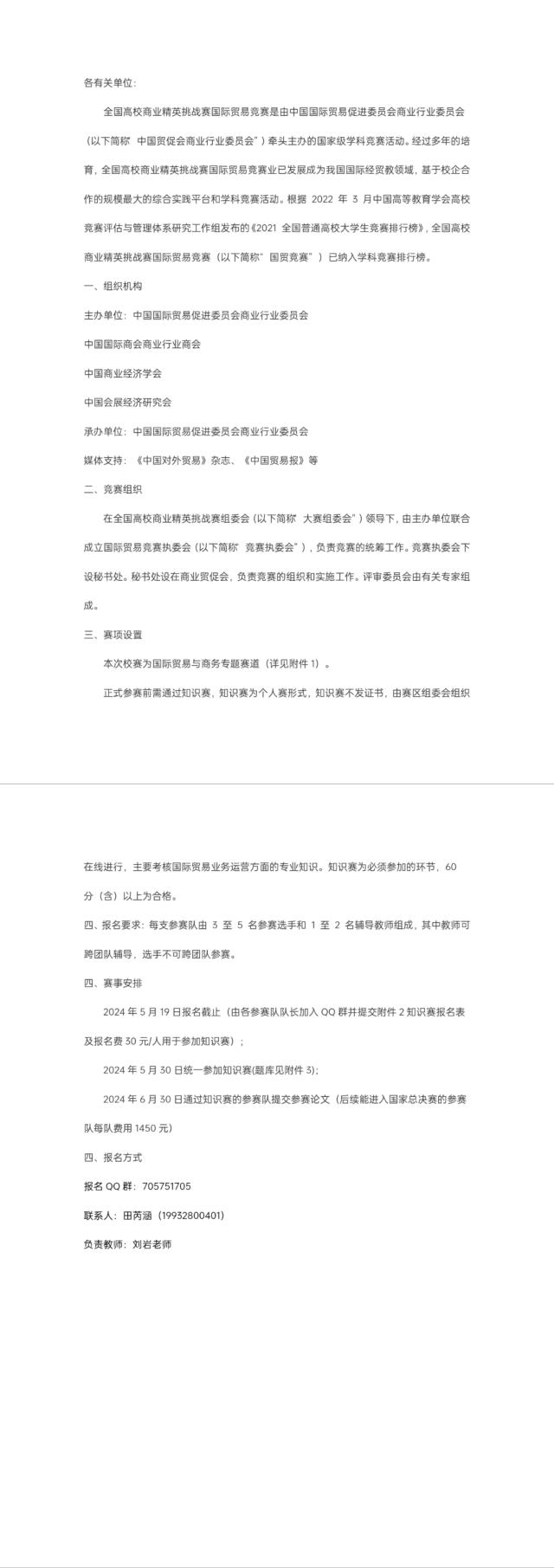 关于举办2024年第十四届全国高校商业精英挑战赛国际贸易竞赛学校赛的通知