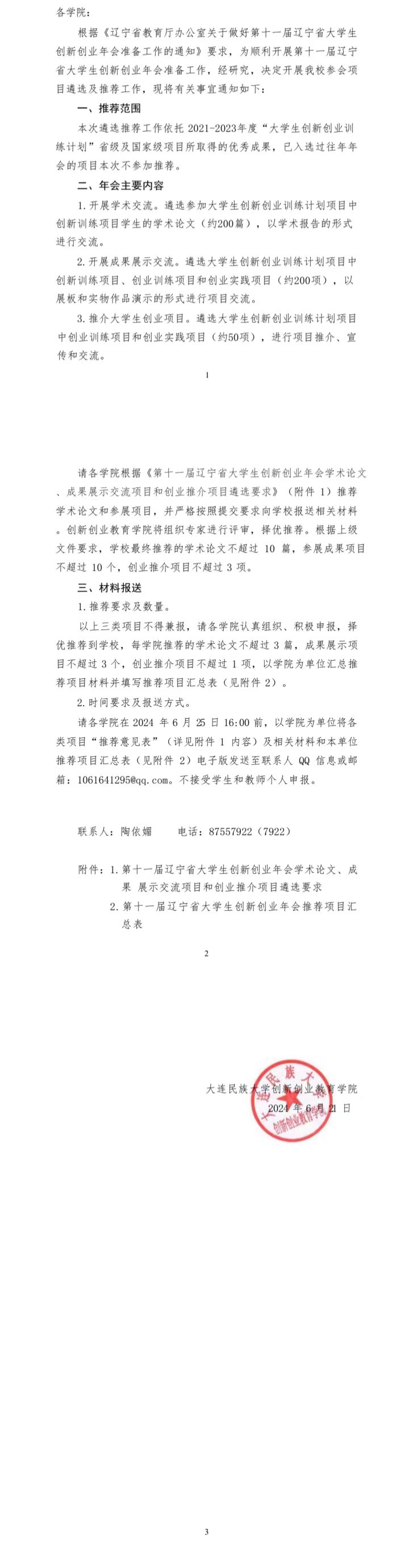 关于做好第十一届辽宁省大学生创新创业年会参会项目推荐工作的通知