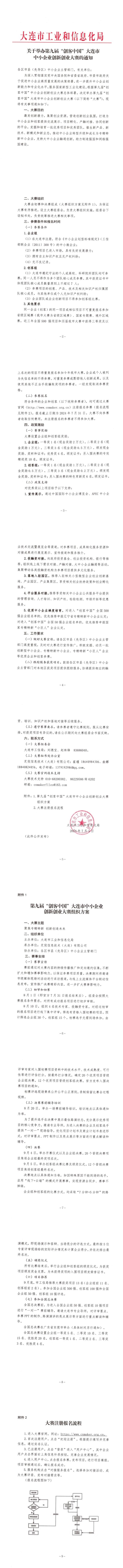 关于举办第九届“创客中国”大连市中小企业创新创业大赛的通知