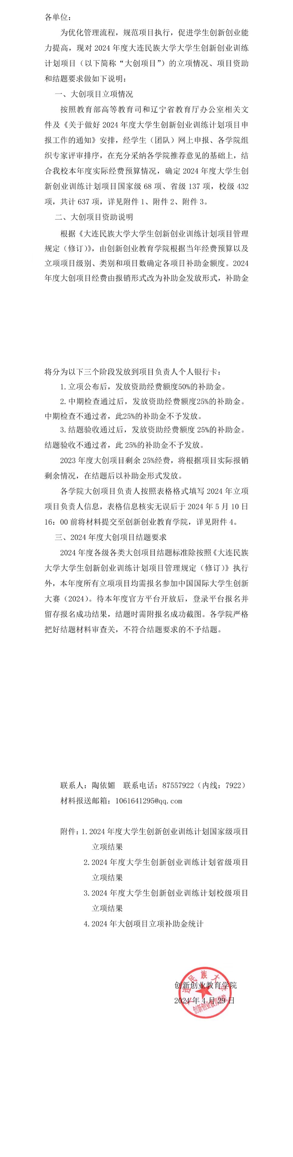 2024年度大学生创新创业训练计划项目立项及管理说明