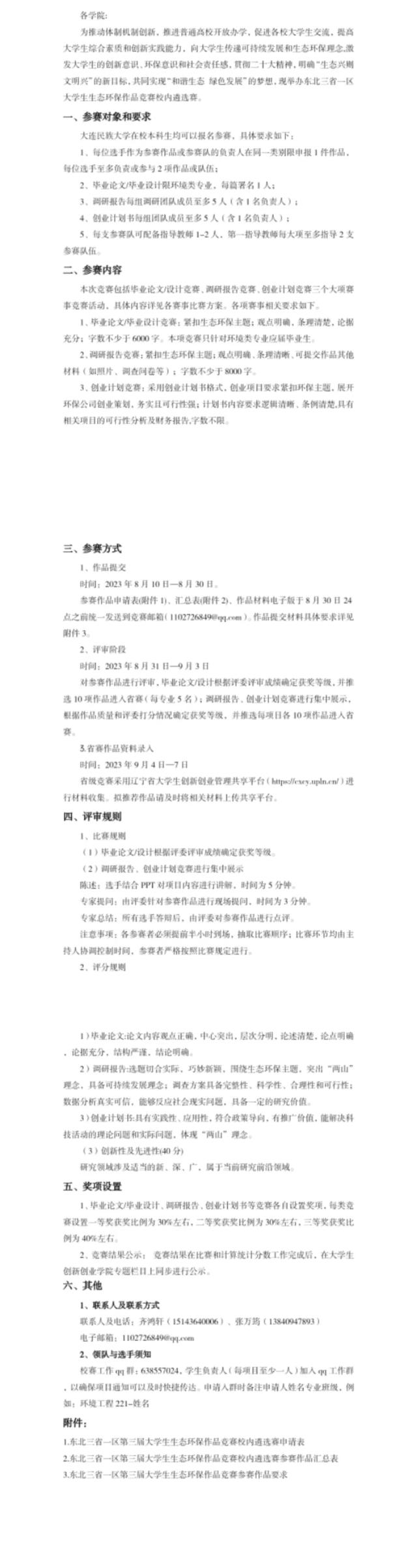 东北三省一区第三届大学生生态环保作品竞赛校内遴选赛通知
