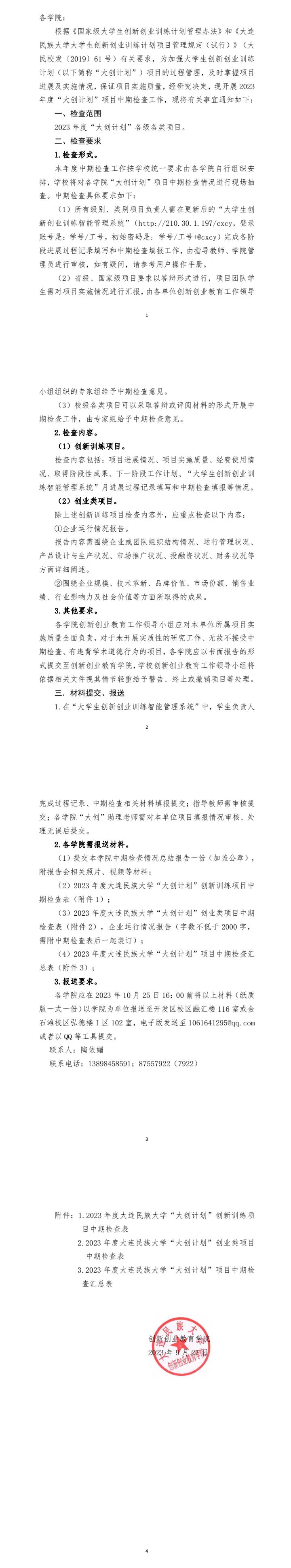 关于做好2023年度大学生创新创业训练计划项目中期检查工作的通知