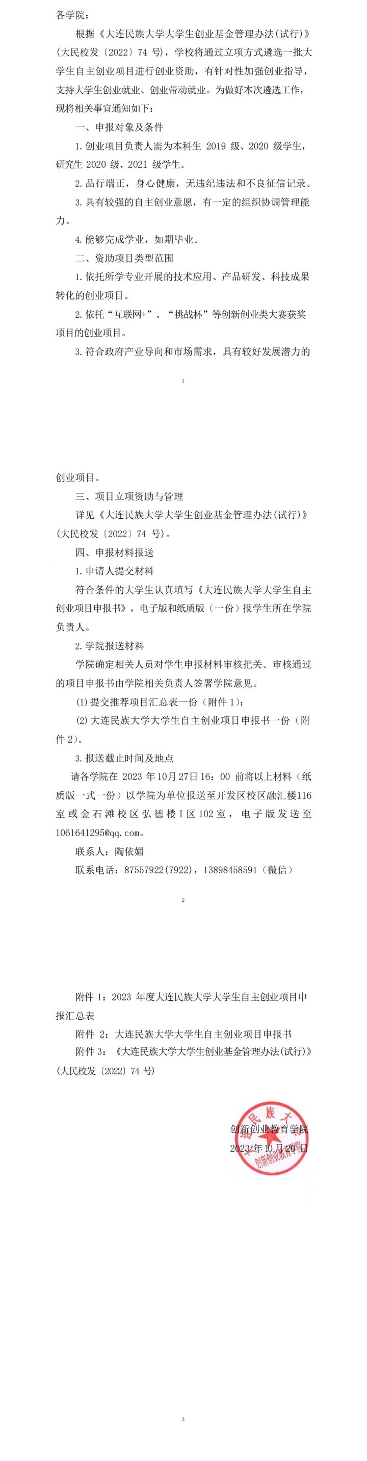关于大连民族大学大学生自主创业项目申报的通知