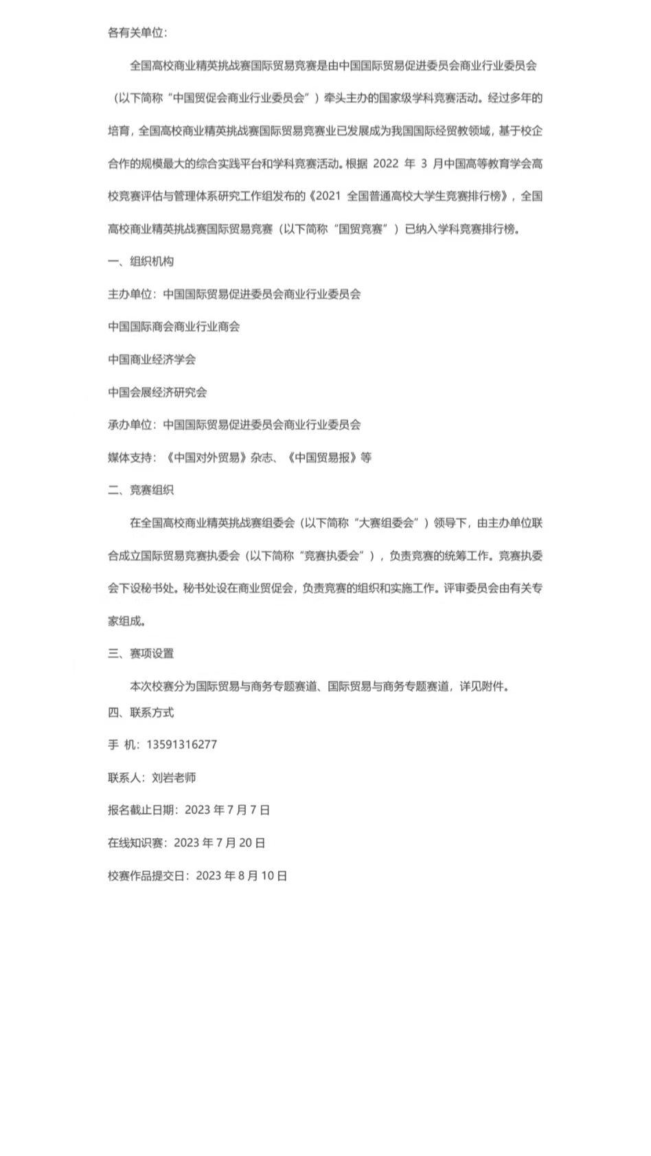 关于举办2023年第十三届全国高校商业精英挑战赛国际贸易竞赛学校赛的通知
