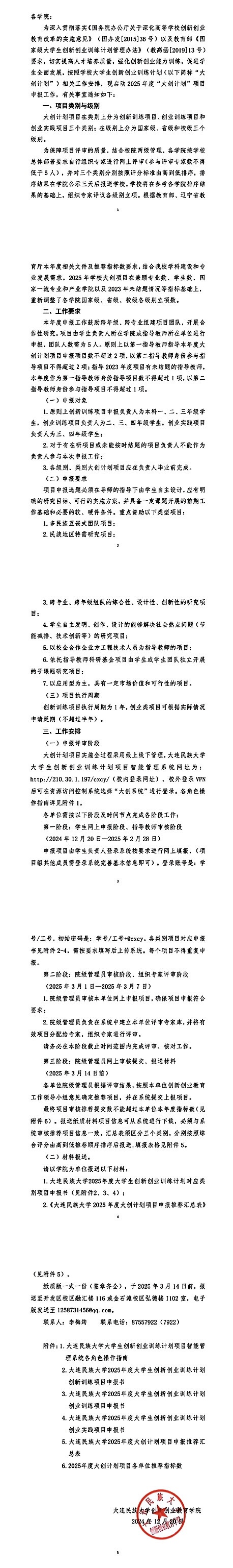 关于做好 2025 年度大学生创新创业训练计划项目申报工作的通知