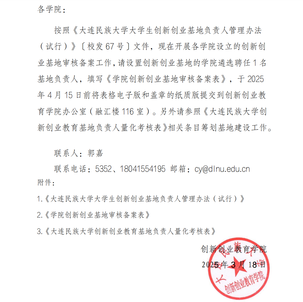 关于开展学院创新创业基地审核备案工作的通知