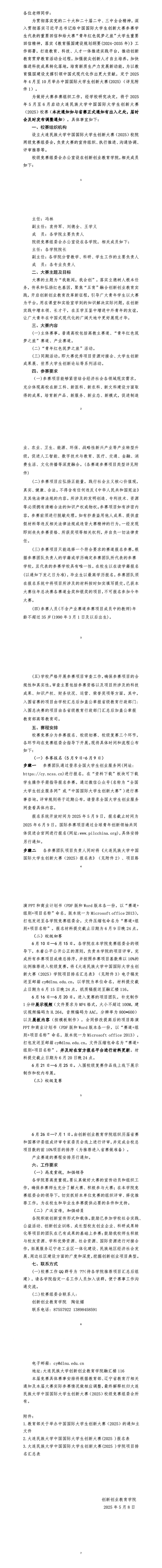 关于举办大连民族大学中国国际大学生创新大赛(2025)校赛的通知