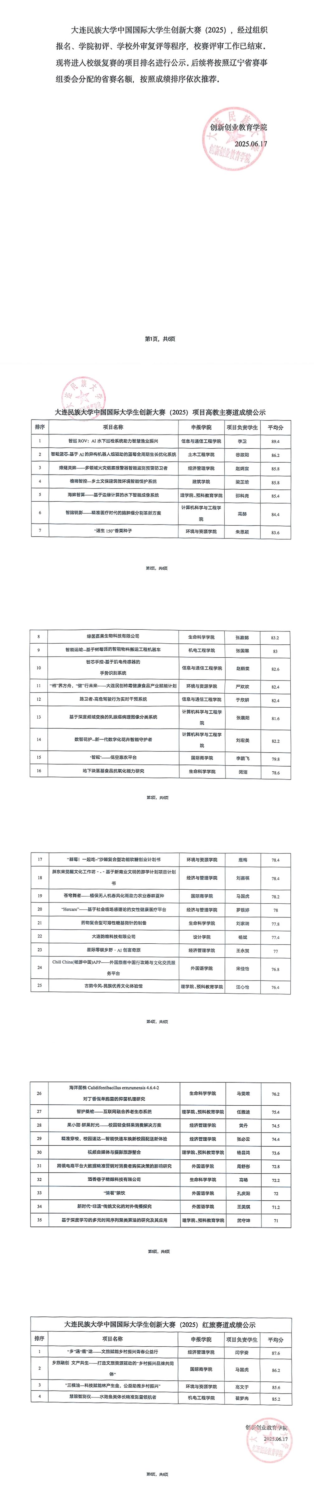 大连民族大学中国国际大学生创新大赛(2025)校赛成绩及晋级名单公示