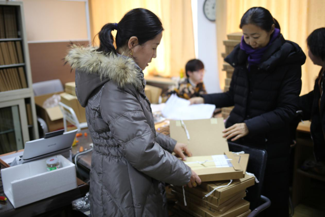 2017年11月20日档案数字化二期工作启动,总体任务为教学、科研、党群、行政、外事、基建六大类档案共计40万页档案进行数字化处理。本次数字化时间紧、工作量大,馆长决定寒假数字化工作不间断、不停工。1月22日,学校开始放寒假。档案馆长宋江岩带领全馆工作人员正常上班,一鼓作气加班20余天,与专业公司通力合作,保质保量做好档案数字化二期工作。