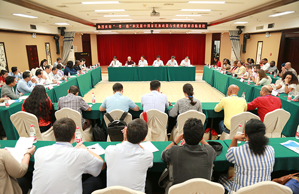 8月26日至27日,由国家民委国际交流司与商务部国际商务官员研修学院联合举办的“一带一路”国家民族政策与实践研修班、发展中国家民族政策与实践研修班的53名学员到我校进行交流并座谈。国家民委国际交流司副司长兰海滨,学校校长丁克毅、大连市民宗局局长薛军、学校党委副书记陈明华、学校副校长黄永东、大连市民宗局相关领导、学校国际交流合作处领导与研修班学员参加座谈。