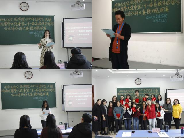 为丰富留学生校园文化生活,提升中文诵读能力和汉语应用能力,选拔优秀的留学生代表我校参加大连市第二十一届高校外国留学生汉语演讲比赛,2019年11月27日,国际文化交流学院举办留学生汉语朗诵比赛暨大连市第二十一届高校外国留学生汉语演讲比赛校内选拔赛。国际文化交流学院副院长刘俊民、系主任谭惠敏、教师代表担任本次比赛的评委。