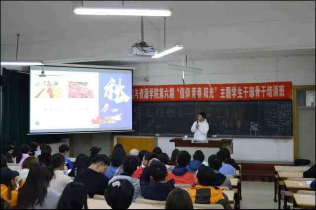 学生干部是学生群体的骨干,是学院学生工作的最前端。为进一步加强学生干部队伍建设,提高学院学生干部的综合素质和工作能力。经过为期一个月的学生干部培训,环境与资源学院第6期“信仰·青春·阳光”主题学生骨干培训班已经圆满结束。此次培训班旨在提升学生干部政治理论素养和工作业务能力,增强团队凝聚力。