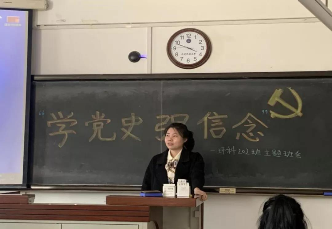 环境科学181班在2-201召开学习学校党委书记赵铸同志在“学党史、强信念、跟党走”主题升旗仪式上的讲话精神讨论暨环境科学181班第一次班会。班会由班长王靖涵主持召开。班会邀请了环境与资源学院党总支书记兼班级辅导员李华戎老师及班导师宋彦涛老师。首先,全体起立合唱国歌;班长王靖涵介绍班会主要内容并播放短视频引入班会;团支书张倩分享赵铸书记讲话以及个人观点;刘馨泽、李晓婷、杨若祎等6位同学(囊括积极分子、发展对象、班委等)借此班会分享个人党史学习心得以及高效学习方法和对学校疫情防控工作的看法;之后班导宋彦涛老师点评此次班会并给予同学新学期新希望;最后书记李华戎老师对班会内容进行了总结,并就党史学习与同学们进行分享,给予同学们信心与期望。