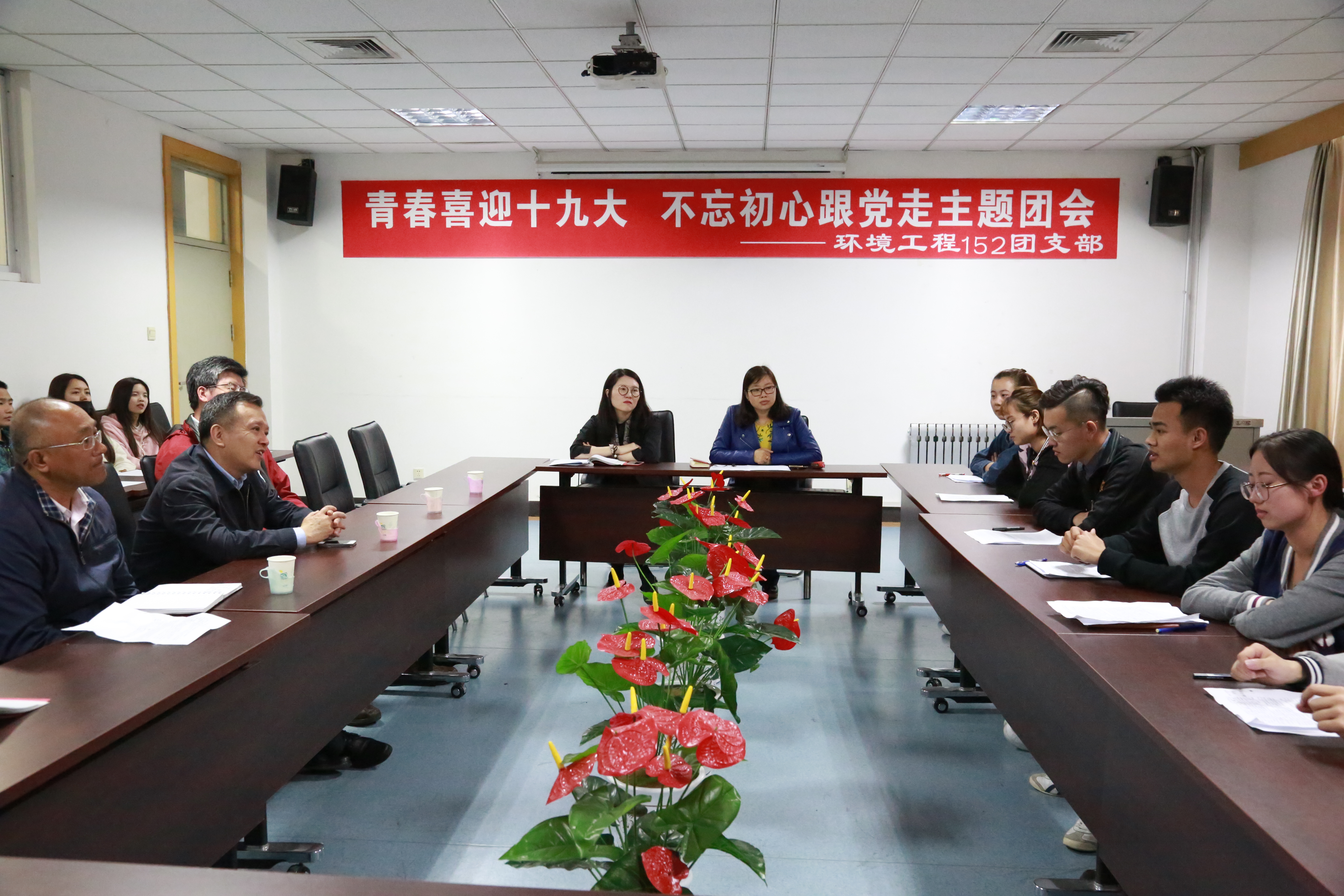 民大新闻网讯 根据学校团委“一学一做”教育实践部署和安排,5月3日下午,环境与资源学院环境工程152班团支部组织召开“青春喜迎十九大,不忘初心跟党走”主题团会。党委副书记王晓华,环境与资源学院院长吕国忠、党总支书记李华戎,学院班导师、辅导员参加团会。