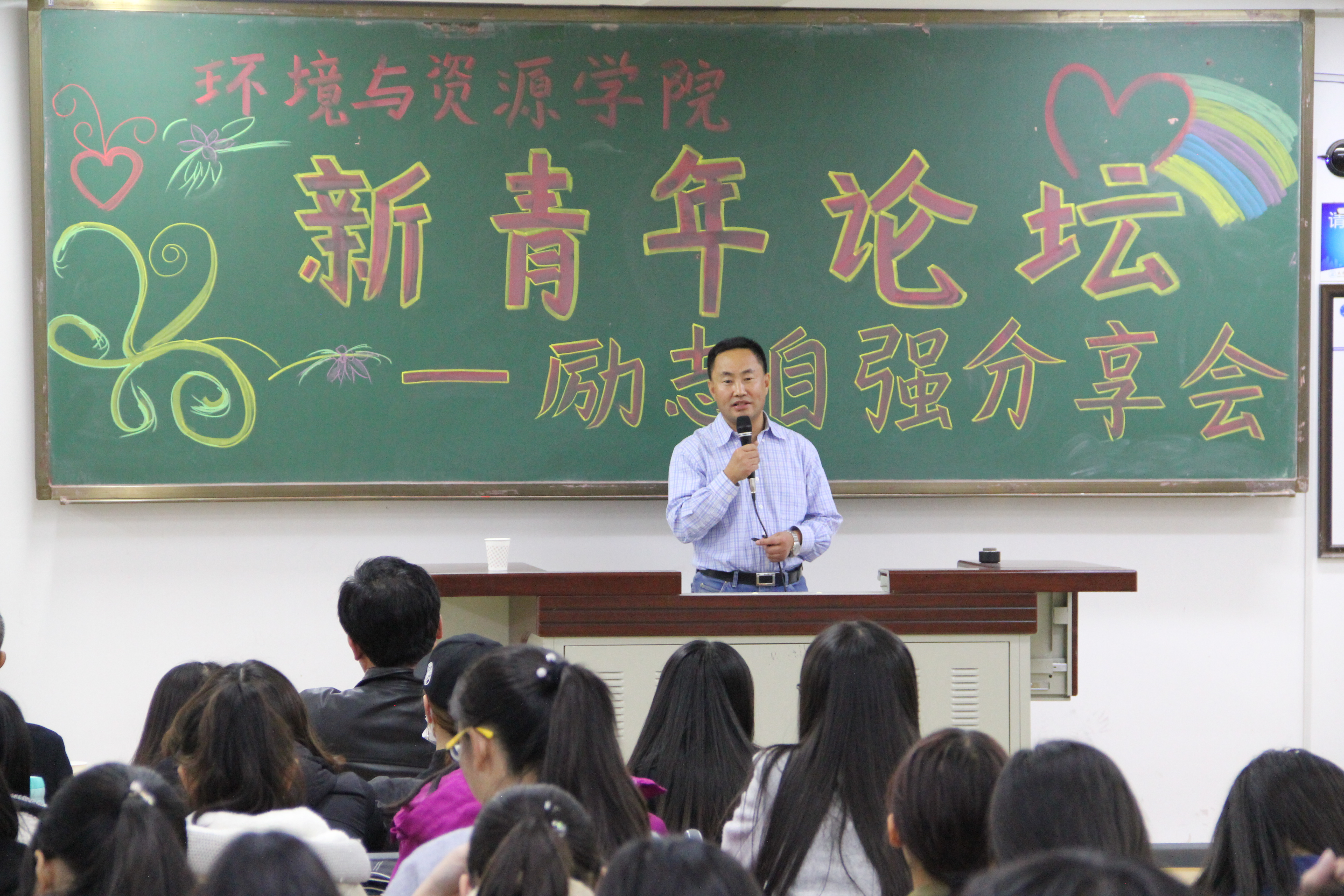 民大新闻网讯 为提高学生的自立自强意识,培养学生做一名自强而独立的新时代青年,2016年11月16日,环境与资源学院特邀请著名成功企业家洪湖先生与学生们进行经验分享与交流。环境与资源学院院长吕国忠、党总支书记李华戎以及全体2016级新生参加了此次新青年论坛。