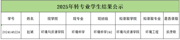 根据《关于开展2025年本科生转专业工作的通知》(大民校发〔2025〕2号)相关规定,结合学生第一学期课程成绩和转专业面试成绩,经学院转专业领导小组审核通过,现将结果公示如下: