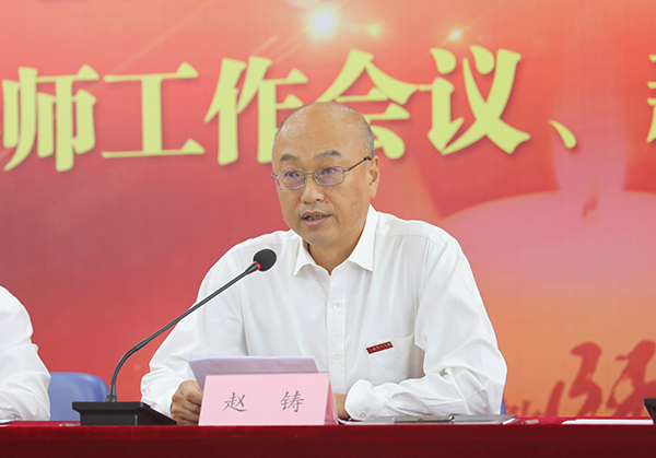 赵铸代表学校党委向全体教师和干部职工致以节日祝贺和崇高的敬意。他指出,当前,全校上下正在深入学习贯彻习近平总书记“七一”重要讲话精神和总书记在中央民族工作会议上的重要讲话精神,这对我们办好学校、做好工作具有十分重大的意义,今天的大会也是学校党委贯彻落实习近平总书记重要讲话精神和党中央决策部署的重要举措。全体教师要贯彻落实习近平总书记给全国高校黄大年式教师团队代表重要回信精神,学为人师、行为世范,立德修身,潜心治学,开拓创新,真正把为学为事为人统一起来,当好学生成长的引路人。
