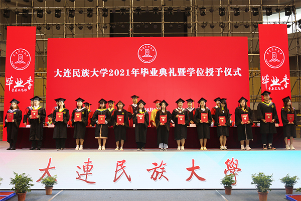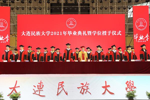 典礼在庄严的国歌声中拉开帷幕。党委常委、副校长黄永东宣读2021届毕业生名单、授予学位的决定和表彰优秀毕业生的决定。党委常委、校领导为优秀毕业生代表颁发证书。