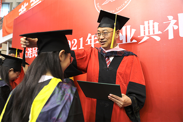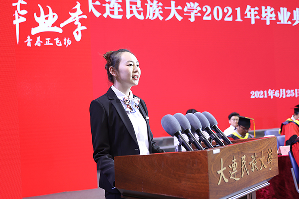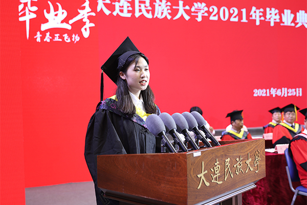 毕业生代表、土木工程学院土木专业李超越回顾了大学学习生活的收获和感悟,感谢母校老师的辛勤培养。2021届毕业生将肩负新时代的使命与担当,传承民大精神,坚定走入人生新阶段,不论未来枝叶伸向何方,根仍深扎在这里。