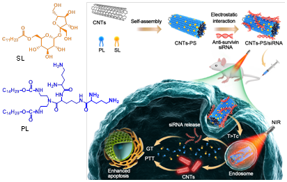 民大新闻网讯 日前,我校生命科学学院张树彪教授团队在纳米药物治疗肿瘤领域取得新进展。团队与国家纳米科学中心梁兴杰、大连医科大学甄宇红等人合作,使用肽脂质修饰的碳纳米管进行基因和光热联合治疗肿瘤研究,获得了显著的肿瘤抑制效果。