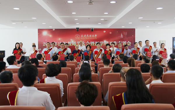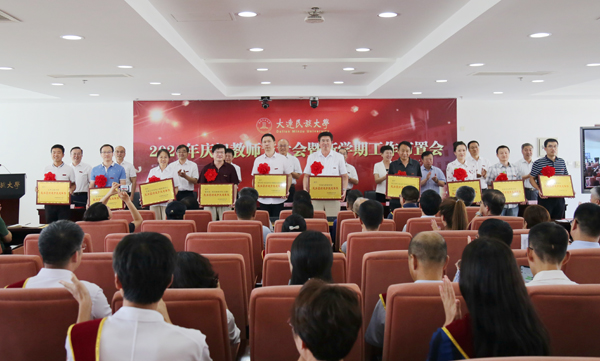党委副书记杜元虎宣读了2019—2020学年教师节评优结果,民族团结进步先进集体和个人评选结果,并通报了一年来获得市级以上政府奖励名单。与会领导为获表彰教师和集体颁发证书。