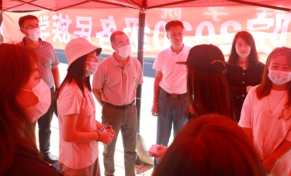 学校领导丁克毅、张维民、陈明华、黄永东等分别到各迎新点和学生公寓检查迎新工作,看望前来报到的新同学,并慰问参加迎新工作的师生员工。