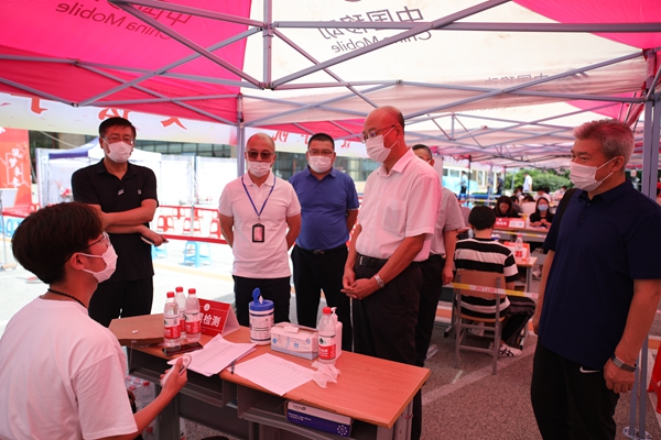赵铸慰问了坚守在烈日下的一线工作人员,详细了解了报到流程和注意事项,提醒大家注意防暑,做好自身防护,要求工作人员要悉心为返校学生做好服务,确保返校工作安全有序进行。在报到现场,赵铸与返校学生进行了亲切交流,叮嘱同学们在校期间要做好个人防护,尽快适应返校后的学习和生活,同时勉励大家,把这次疫情防控的经历当作一次人生磨练,珍惜当下,敬畏自然,要更加珍惜时光,好好学习,在确保身体健康的前提下,争取把因为疫情而耽误的学业补回来,在学业上争取新的进步和突破。