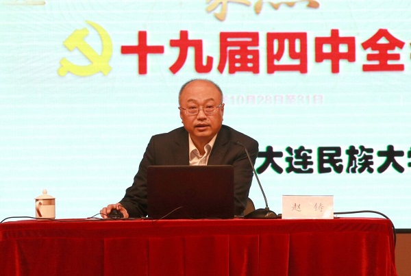 民大新闻网讯 为深入学习宣传和贯彻党的十九届四中全会精神,把广大师生的思想和行动统一到中央重大决策部署上来,按照学校党委统一安排部署,校领导深入联系单位开展宣讲,实现全校师生员工全覆盖。11月25日至26日,党委书记赵铸分别在两校区为经济管理学院、物理与材料工程学院、信息与通信工程学院师生做了党的十九届四中全会精神专题宣讲报告。
