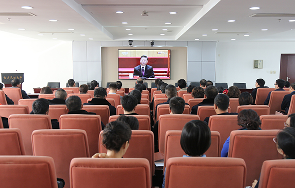 学校领导、机关全体工作人员及部分师生集中观看了大会直播盛况,各二级党组织也通过各种方式和途径组织收看大会直播。