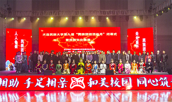民大新闻网讯 12月11日晚,第九届民族团结活动月闭幕式暨民族文化展演在金石滩校区体育馆落下帷幕。党委书记赵铸,党委副书记、纪委书记刘锐,副校长王永强出席活动。学校相关职能部门负责人、各二级学院相关负责人及金石滩校区全体2018级学生参加活动。来自蒙古族、朝鲜族、傣族、藏族、维吾尔族、满族、汉族等7个民族的文化展示及撒拉族、仡佬族、鄂伦春族、乌孜别克族等22个民族的服饰展,给在场的观众带来了一场精彩生动的民族团结教育公开课。