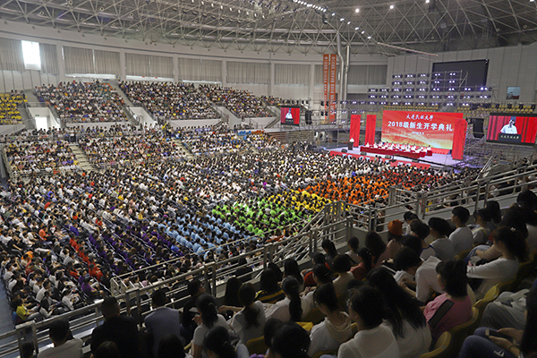 民大新闻网讯 金秋九月,硕果盈枝。9月9日下午,我校2018级新生开学典礼在体育馆举行。学校党委书记赵铸,校长刘玉彬,副校长杜元虎,党委副书记、纪委书记刘锐,副校长段晓东,总会计师郝强,校学术委员会主任刘勇奎,各学院和相关职能部门负责人、教师代表,2018级全体新生及部分家长参加典礼。典礼由学校办公室主任关锋主持。