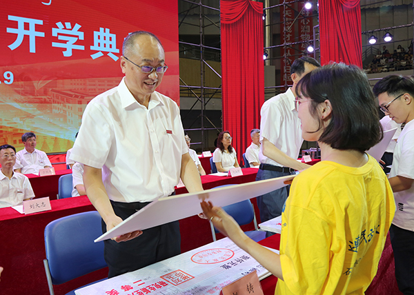 典礼在庄严的国歌声中开始。刘锐宣读《关于评定2018级“新生入学奖学金”的通报》。本年度共有267名硕士研究生、72名本科生及预科生获得各等次奖学金。在热烈的掌声中,与会领导为获奖同学颁奖。
