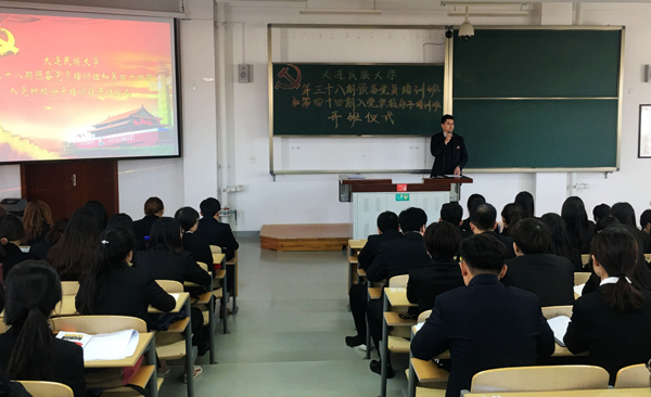 本期培训为期五周,重点围绕习近平新时代中国特色社会主义思想和党的十九大精神、新时代大学生党员的责任和使命、两会精神、中华民族共同体的内涵与新时代的发展等内容展开学习,同时安排获省辽宁省高校“我身边的好书记”称号的党支部书记作事迹报告,组织学员参观大连市规划展示中心、观看党史影片、开展社会实践和研讨等。开班仪式后,进行了本期培训班第一次授课。