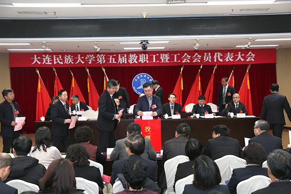 下午14时,大会进行选举。学校党委副书记、纪委书记刘锐主持选举会。大会选举产生了大连民族大学教职工暨工会会员第五届执行委员会、工会委员会、工会经费审查委员会。