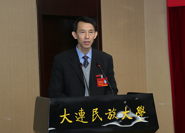 刘玉彬作了题为《凝心聚力 求真务实 以“三个突出”战略为引领 努力推动学校事业高质量发展》的学校工作报告。报告回顾和总结了学校2017年主要工作开展情况,肯定了过去一年全校师生员工在党委领导下取得的成绩。刘玉彬指出,“十二五”以来,学校抢抓机遇,锐意进取,在党的建设、人才培养、学科专业建设、科学研究、社会服务、人才队伍建设、思想政治工作、民族团结教育、国际交流合作、现代大学制度建设、办学条件等方面取得了令人瞩目的成就,学校成功更名为大连民族大学,研究生教育实现突破,双D港科技产业园投入使用,荣获2项国家科技进步二等奖,学校再次被国务院授予“全国民族团结进步模范集体”称号,获评“全国民族团结进步创建活动示范高校”。刘玉彬强调,2018年是贯彻党的十九大精神的开局之年,是改革开放40周年,是决胜全面建成小康社会、实施“十三五”规划承上启下的关键一年。全校师生员工要深入学习宣传贯彻习近平新时代中国特色社会主义思想和党的十九大精神,推动学校事业创新发展。要突出学科建设,加强资源整合。要突出高质量发展,加强内涵建设。要突出服务国家战略,提升学校的贡献率和影响力。要全面贯彻落实全国高校思想政治工作会议精神,严格执行国家民委决策部署,认真落实“十三五”规划,加快推进深化综合改革,不断开创学校事业发展新局面。