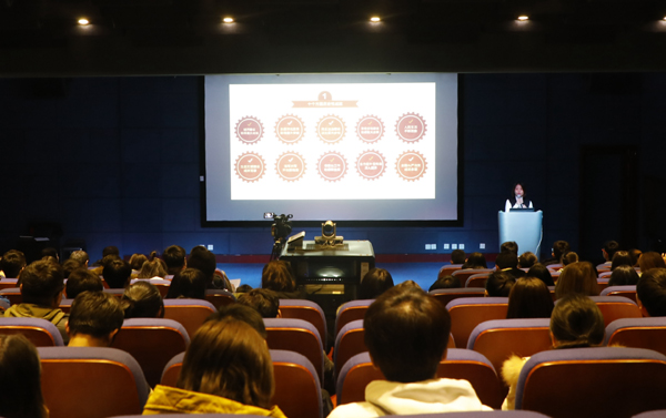 孙晶的报告以“新时代、新思想、新矛盾、新目标”为主线,对习近平新时代中国特色社会主义思想的所处时代、理论方位、基本方略和新旧矛盾对比做了深入阐述,指出科学技术和生产力的巨大变化是产生“新四大发明”的根本原因,并结合设计学院的专业特色与工作实际,鼓励学生在认真学习和理解十九大报告的基础上,勇于担当、奋力开拓,在新时代的机遇和挑战中不懈奋斗。