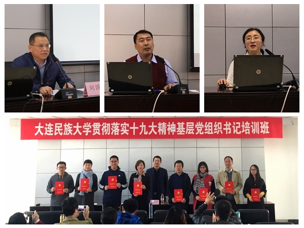 本次培训班为期两天,主要围绕十九大报告精神、基层党组织基本职责和工作方法、党的组织生活的基本内容和方式等内容展开,主题鲜明、重点突出、内容丰富、形式多样。为了提高培训质量,培训班专门邀请了大连市委党校和学校党委宣讲团的专家教授做专题讲座,集体学习了由教育部思想政治工作司副司长王光彦主讲的《学习贯彻< 关于加强新形势下高校教师党支部建设的意见>精神》的干部在线视频课程,同时安排辽宁省、大连市规范化建设示范支部书记做典型交流发言。
