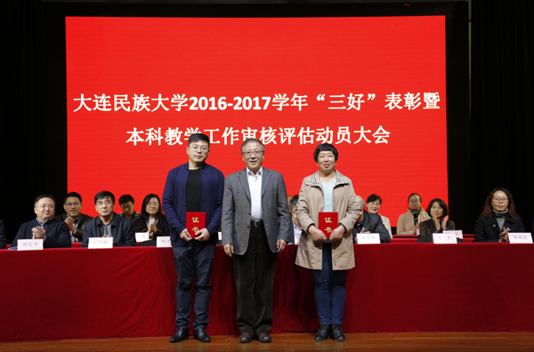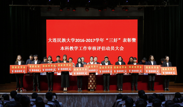 大会在庄严的国歌声中开始。教务处处长周文书宣读《大连民族大学关于表彰2016—2017学年度先进集体、先进个人的通报》,全校有144个班级、3622名同学获得校级以上奖励、有2353人次获得省部级以上学科竞赛奖励。