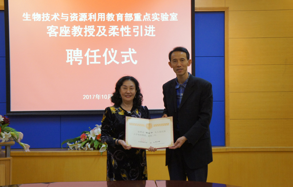 田世平研究员对受聘为我校生物技术与资源利用教育部重点实验室客座教授表示感谢。她特别提到,作为一名少数民族(苗族)科学家,对民族高等教育事业怀有深厚感情,她与大连民族大学合作了近10年,一直关注学校发展。她充分肯定了实验室的发展,表示一定发挥自身优势,取得高水平研究成果,为实验室的发展做出贡献。